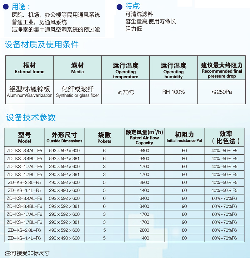 F5/F6袋式空氣過濾器